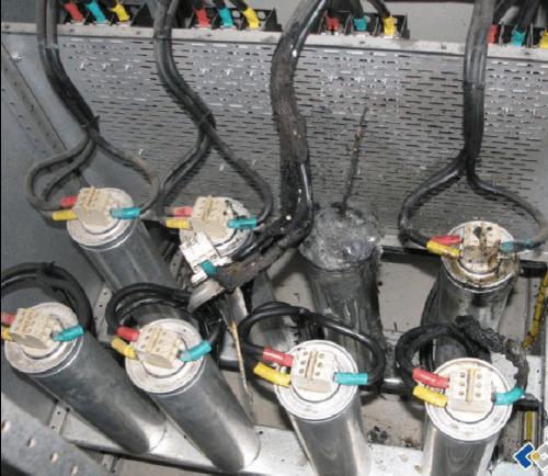 當電容器電流超過1.3倍額定電流或三相不平衡電流超過5%時,應(yīng)將其退出運行。因為電流 過大,將造成電容器的燒壞事故。